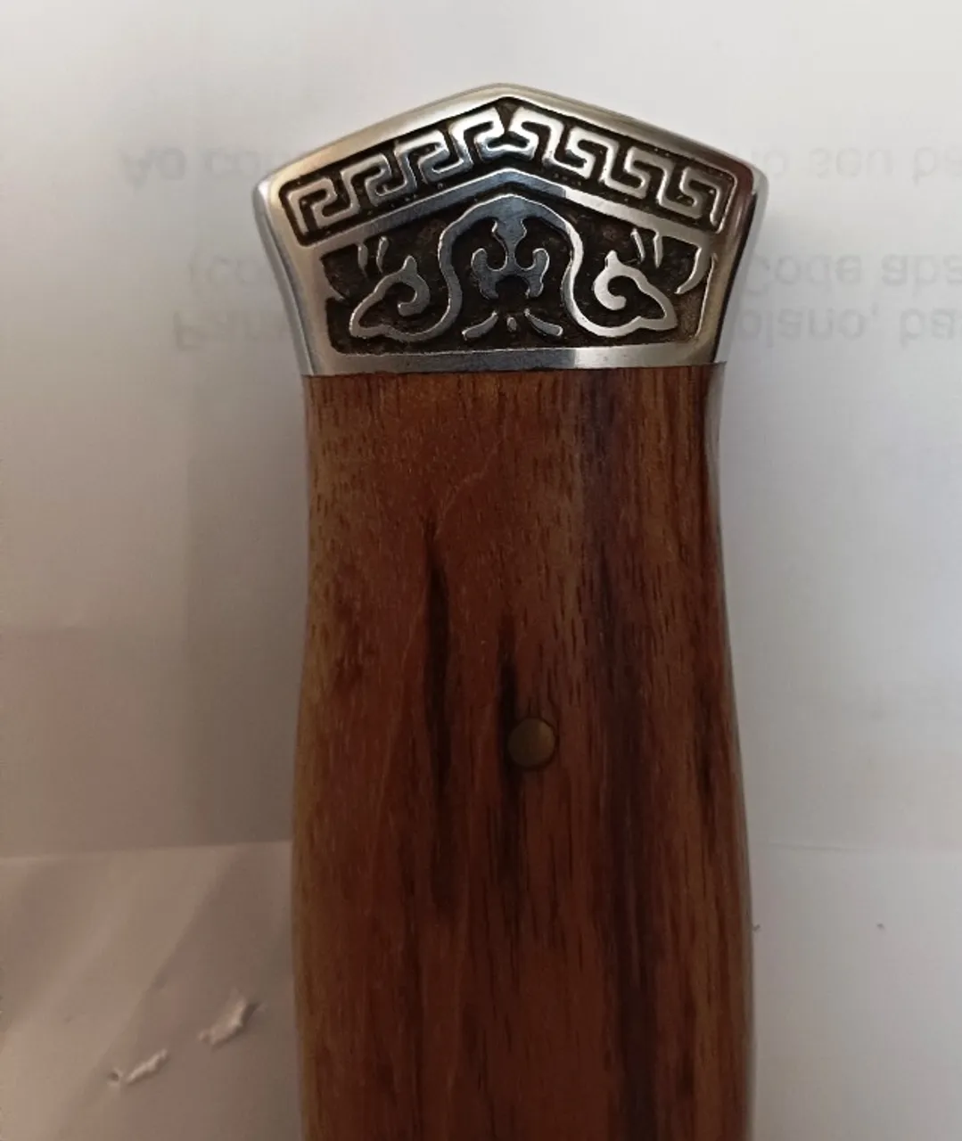 belissima faca adaga em aço inox, cabo em madeira de lei com aço trabalhado. lamina em aço liso. Peça em perfeito esttado. Acondicionado em bainha med. 29 cm. reliquia.