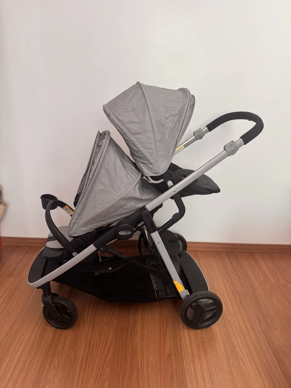 Carrinho de bebê para gêmeos, ou crianças de idades próximas, ideal para passeios com conforto e segurança. Design moderno e funcional, perfeito para facilitar o dia a dia dos pais.