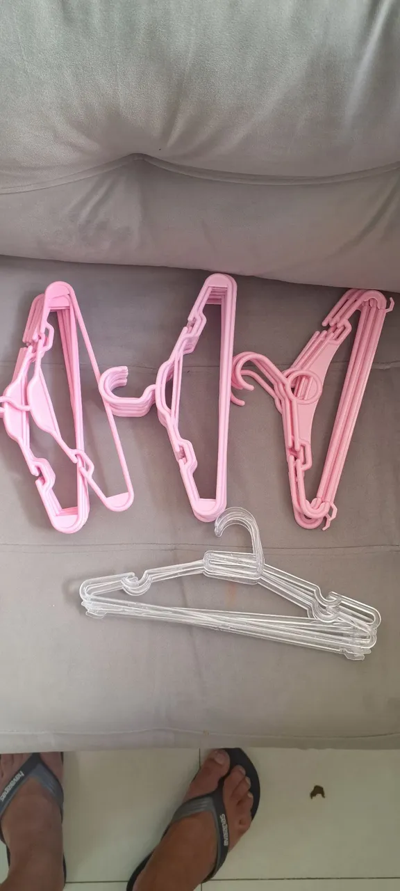 10,00 a dúzia Cabides infantis rosa e transparente, ideais para organizar o guarda-roupa dos pequenos com praticidade e estilo!