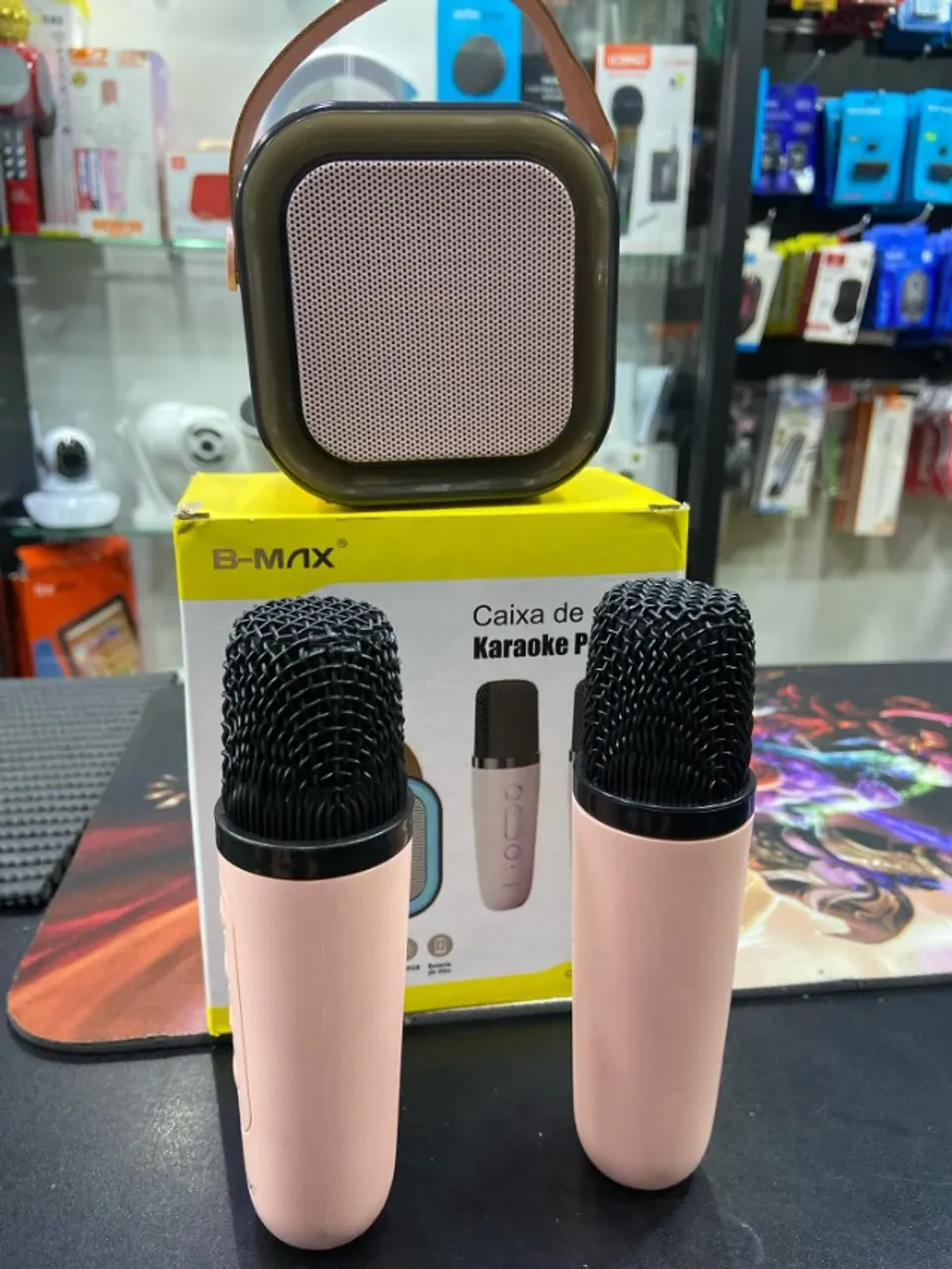 Microfone karaokê ideal para animar suas festas e eventos. Leve a diversão para qualquer lugar com este microfone de alta qualidade. Acompanha dois microfones.
