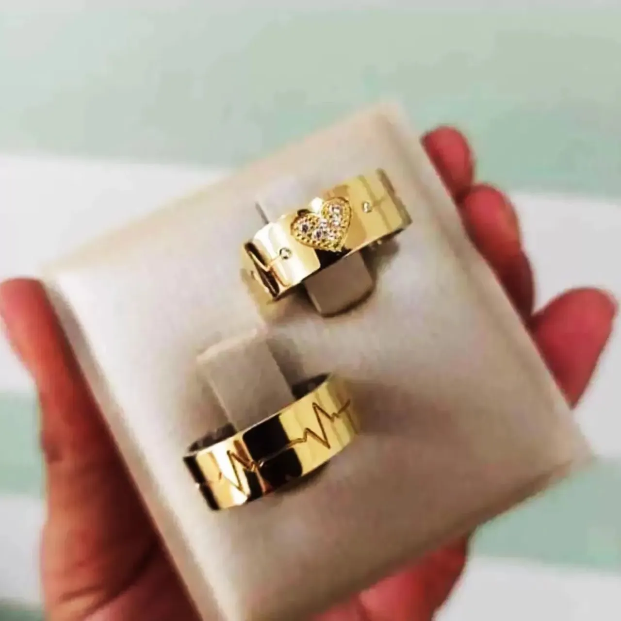 A partir de 100 reais o par..Lindos anéis de casamento o com design de batimento cardíaco, simbolizando amor eterno. Perfeitos para celebrar momentos especiais.