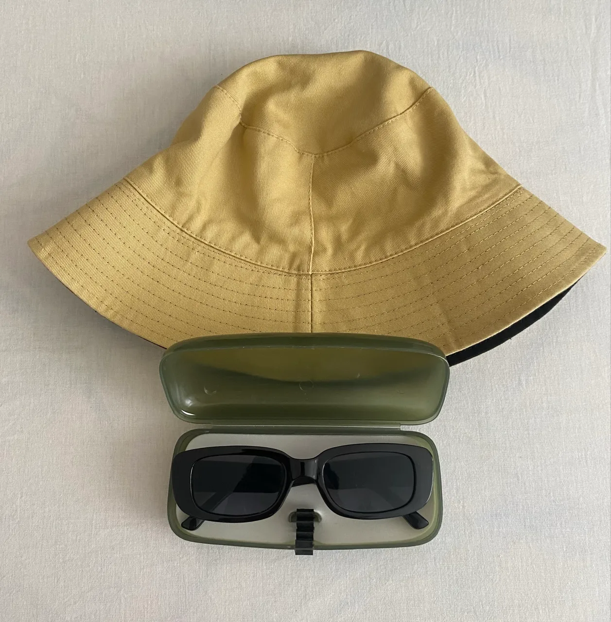 Kit perfeito para um visual estiloso! Este anúncio inclui um charmoso bucket hat e óculos de sol modernos, ideais para completar seu look com elegância e proteção.