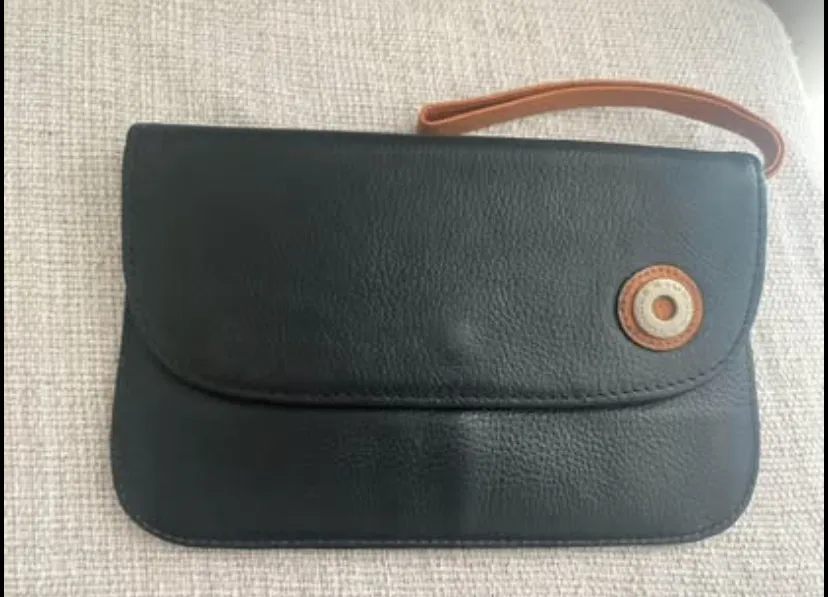 Linda carteira feminina em couro preto, com alça de mão. Design elegante e sofisticado, ideal para complementar seu look. Perfeita para diversas ocasiões.