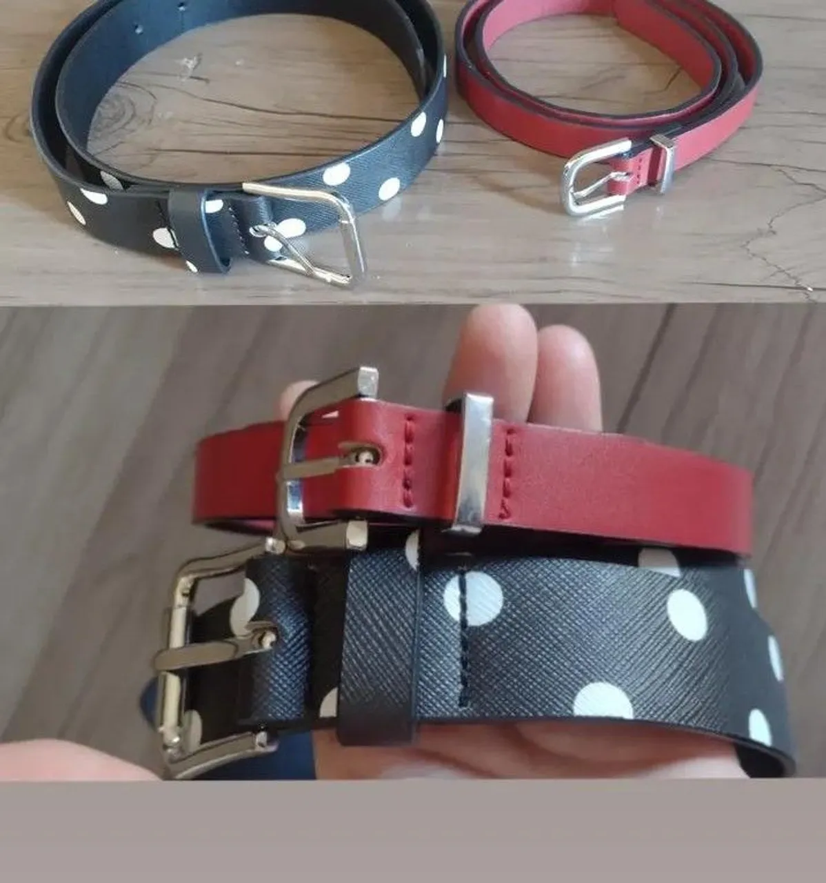 Os 2 por $25 Medida total 95cm 38/40 Retirada Serra ou Vila Velha Conjunto de cintos estilosos para dar um toque especial ao seu look! Um cinto preto com bolinhas brancas e outro vermelho, ambos com design moderno e elegante.