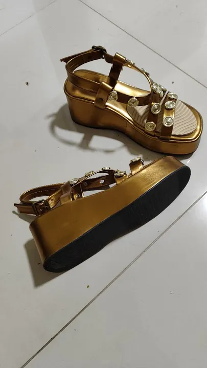 Sandália plataforma feminina, anabela e detalhes em pedraria. Comprei e não usei, pois meu pé é fino. Ideal para pés largos. Coloquei nela uma palmilha removível. Perfeita para ocasiões especiais.