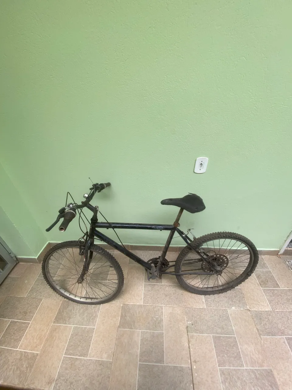 Bicicleta com 6 marcha com os dois pneus furado parada a 1 ano
