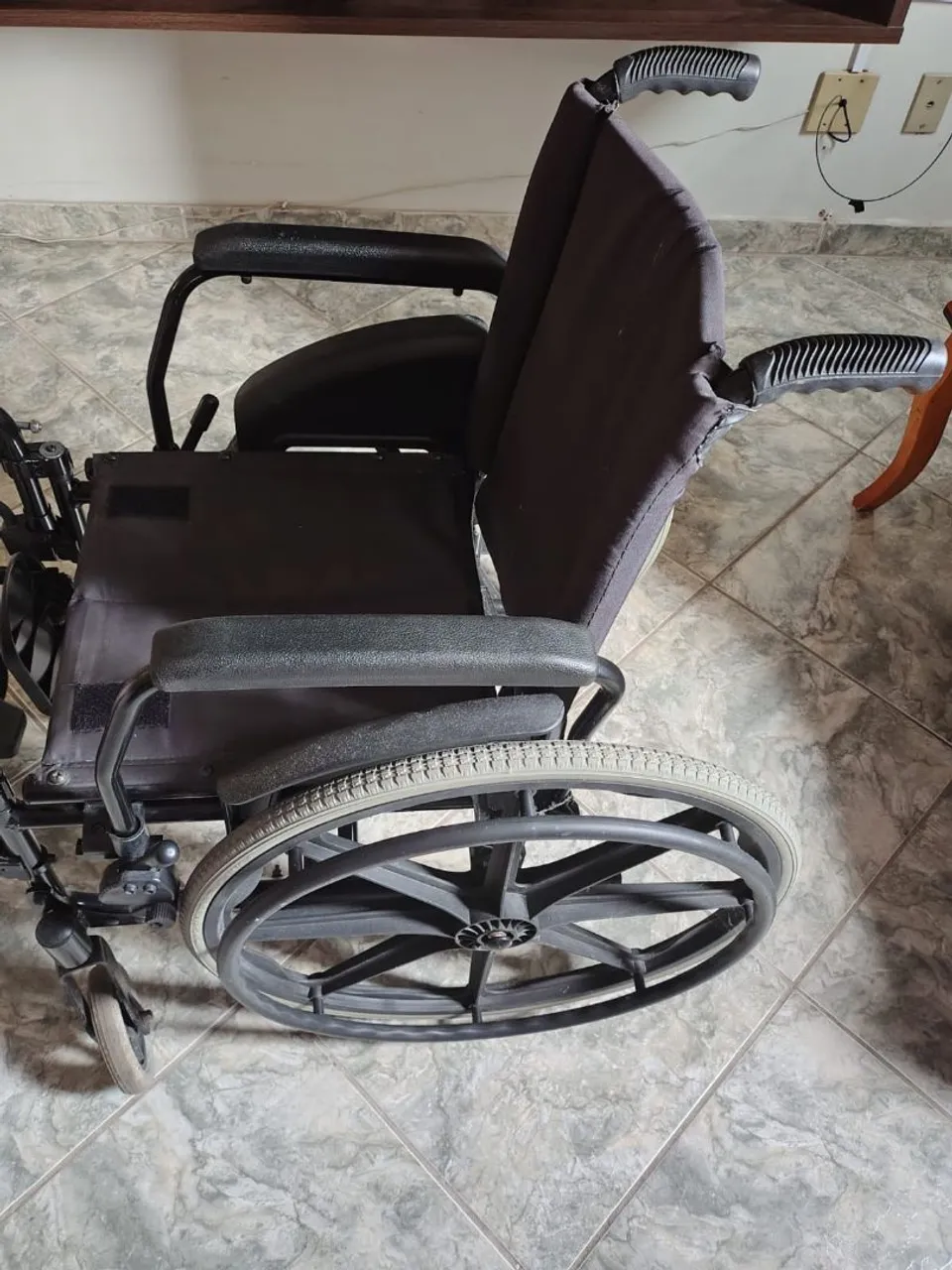 Cadeira de rodas confortável e resistente, ideal para facilitar a mobilidade do dia a dia.