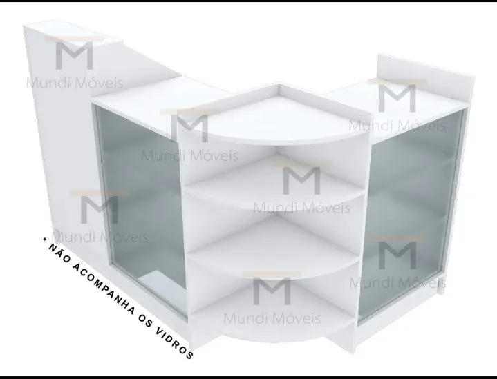 Balcão vitrine caixa em MDF, perfeito para otimizar o espaço e expor seus produtos com elegância. Design moderno e funcional, ideal para diversos tipos de comércio. Não acompanha os vidros.