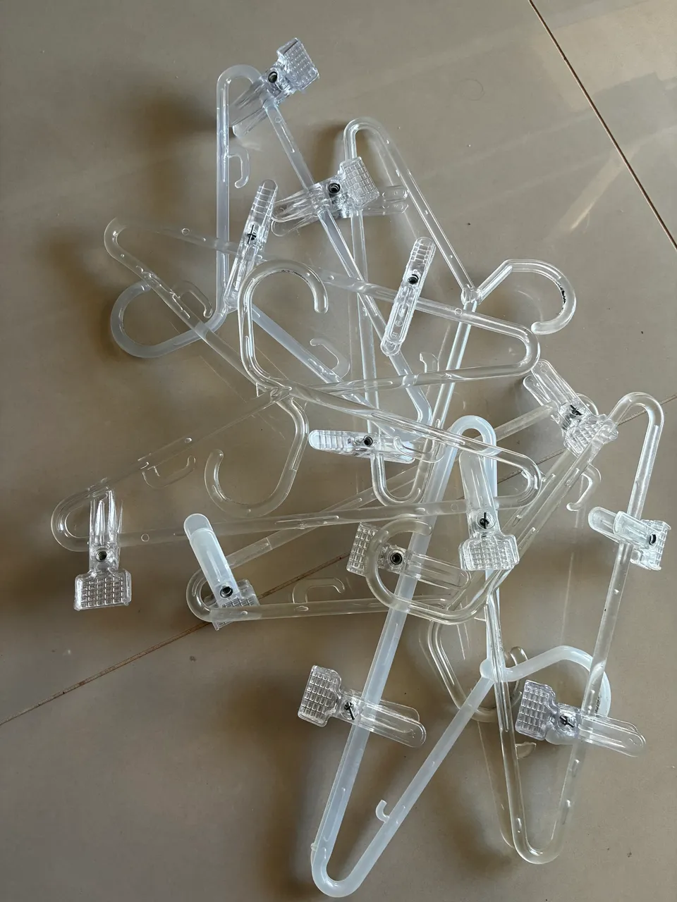 Cabides transparentes infantis ideais para organizar suas roupas com praticidade e elegância. Perfeitos para otimizar espaço no seu guarda-roupa! 3,00 cada