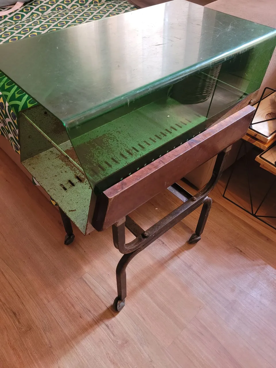 Fichario com rodinhas,base em ferro e tampa de acrilico ,funcional,com uma latinha de tinta spray fica mais top anda,se quiser usar sobre a mesa o pé é removível. Retirar, ZAP