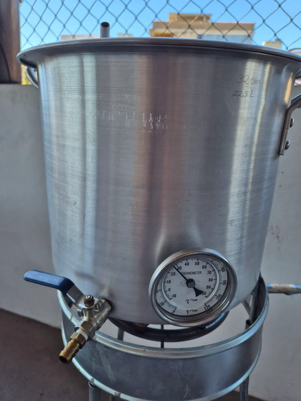 - Duas panelas (n32 e 34) com as torneiras, uma panela com fundo falso e termômetro. Com tampa. Uma tampa já preparada pra recirculacao.