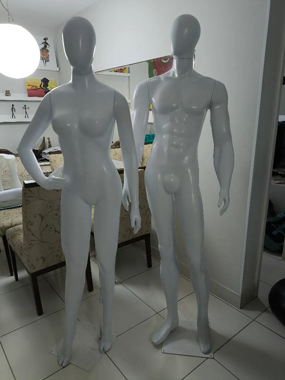 Manequins femininos e masculinos, ideais para exposição de roupas em lojas de comércio. Com design moderno e elegante, valorizam suas peças e atraem a atenção dos clientes.
