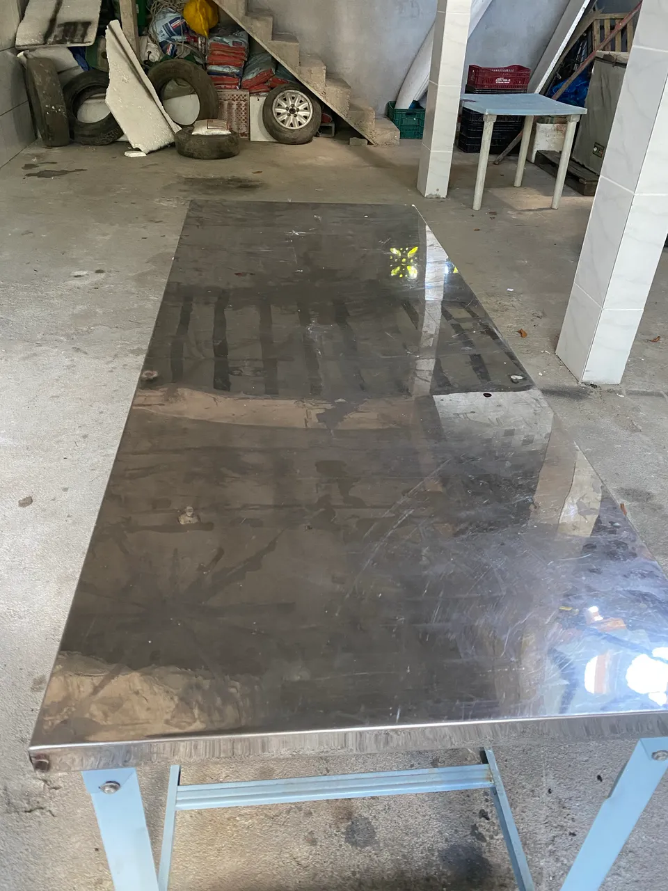 MESA DE SERVIÇO EM TAMPA INOX USADA TAMANHO: 1,80 x 0,7 WhatsApp: 279... ver número