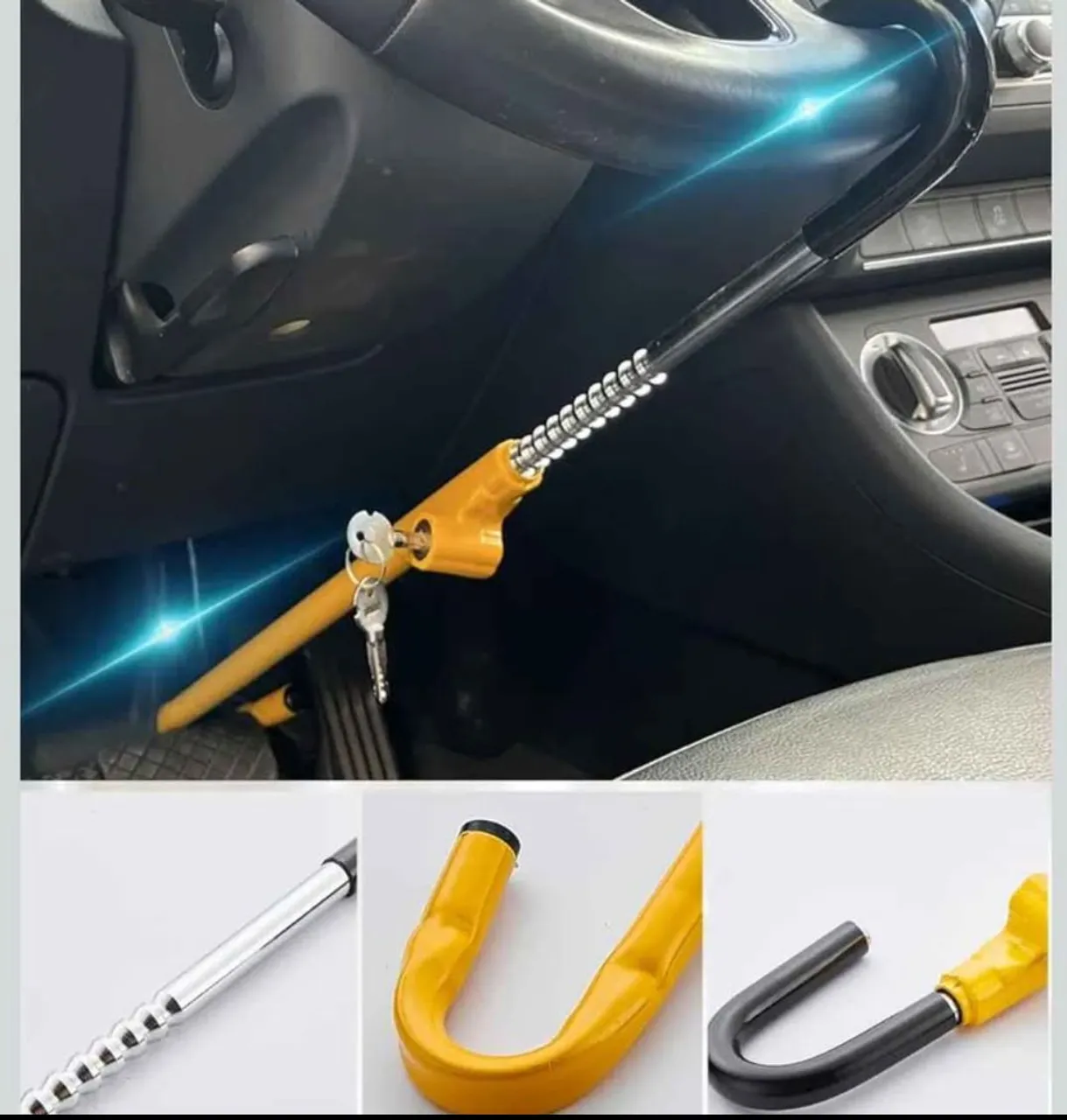 Dispositivo de carro antifurto com trava de volante, trava de freio Dodomes para pedal de volante, gancho retrátil, produtos de segurança para carro, ajuste universal, amarelo