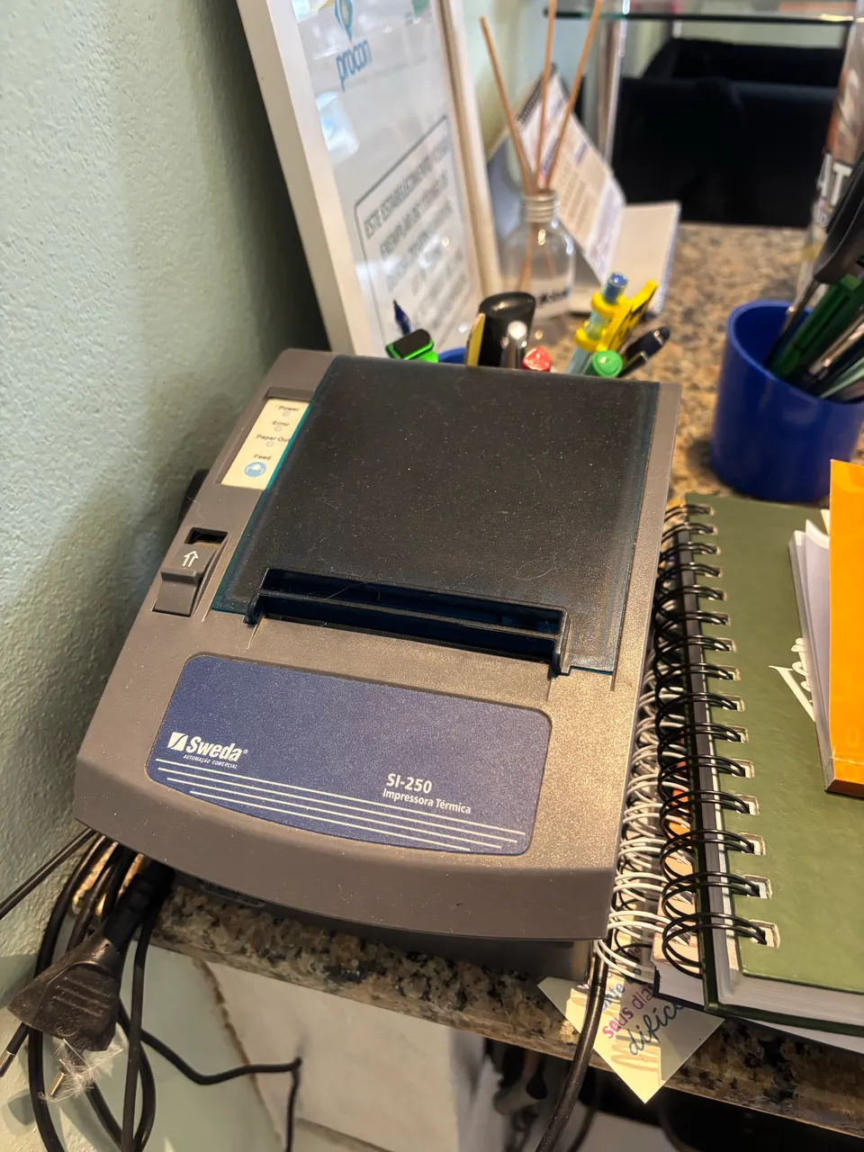 Vendo impressora térmica Sweda SI-250 é perfeita para o seu comércio! Imprima recibos, comandas e etiquetas de forma rápida e eficiente. Acompanha caixa de rolos de papel por 300,00. Caixa metálico com chave 150,00 e leitor de código de barras 100,00