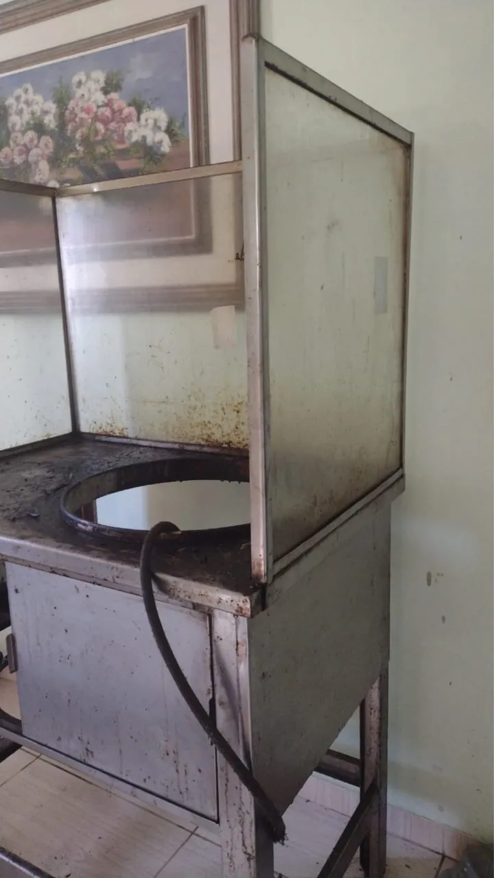 Todo em inox, está assim pois tirei foto dele sujo e não consegui lavar porque me mudei.