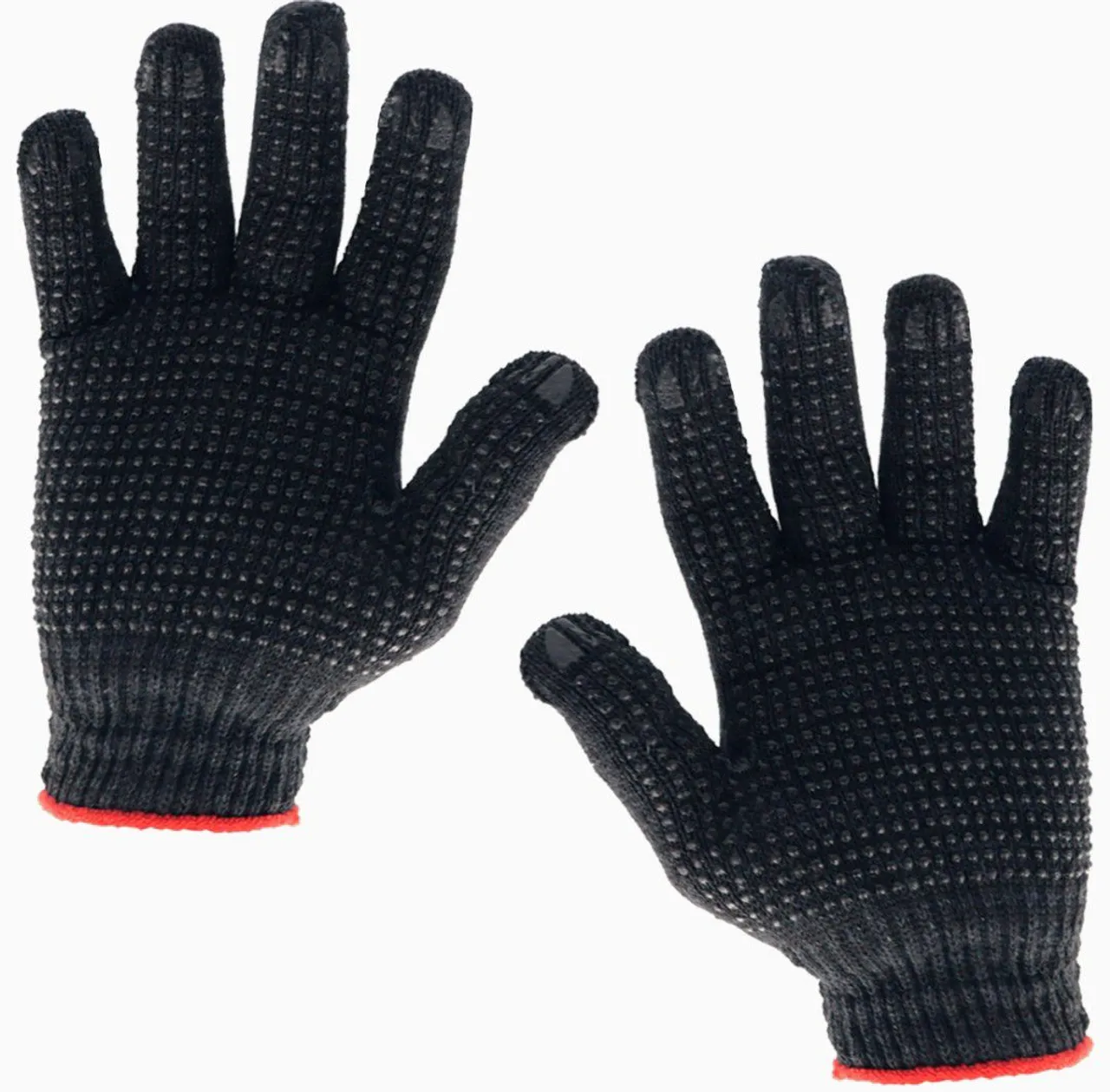 Luvas de segurança com pontos de silicone para maior aderência e proteção. Ideal para diversas atividades que exigem segurança e precisão. R$4,00 o par.