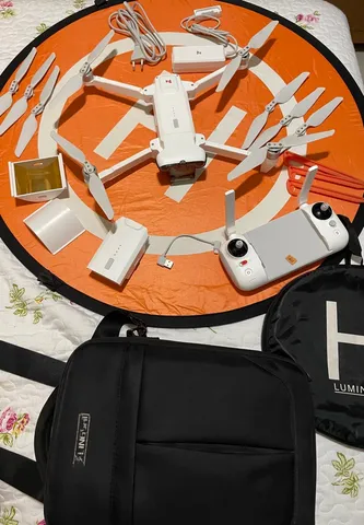 Drone acompanha caixa e todos acessórios da foto.