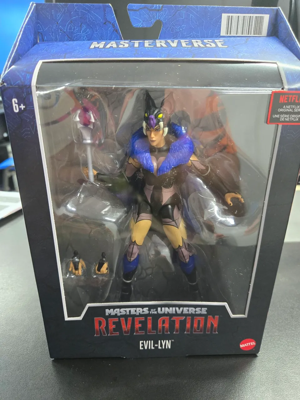 Action Figure Evil-Lyn da linha Masters of the Universe: Revelation. Figura detalhada, com acessórios e design fiel ao personagem. Perfeita para colecionadores e fãs da série.