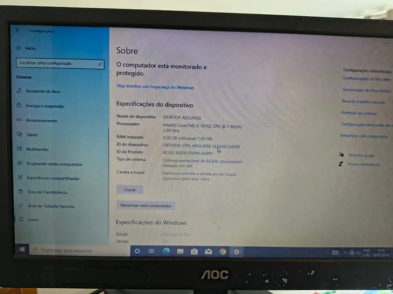 Monitor AOC, funcionando.