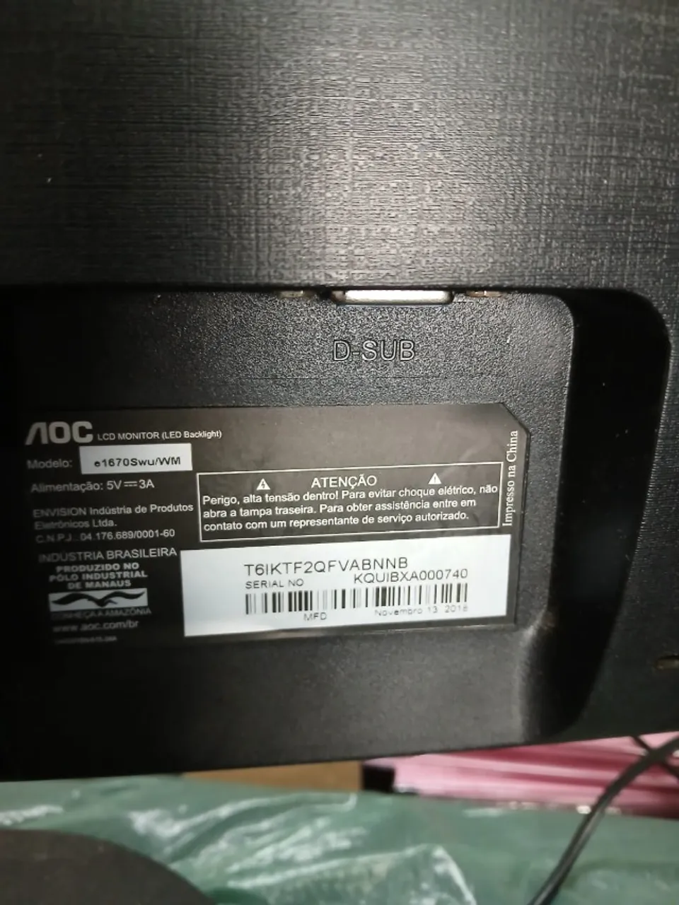 Monitor AOC com tela LED e design moderno. Ideal para diversas tarefas do dia a dia, proporcionando imagens nítidas e cores vibrantes.
