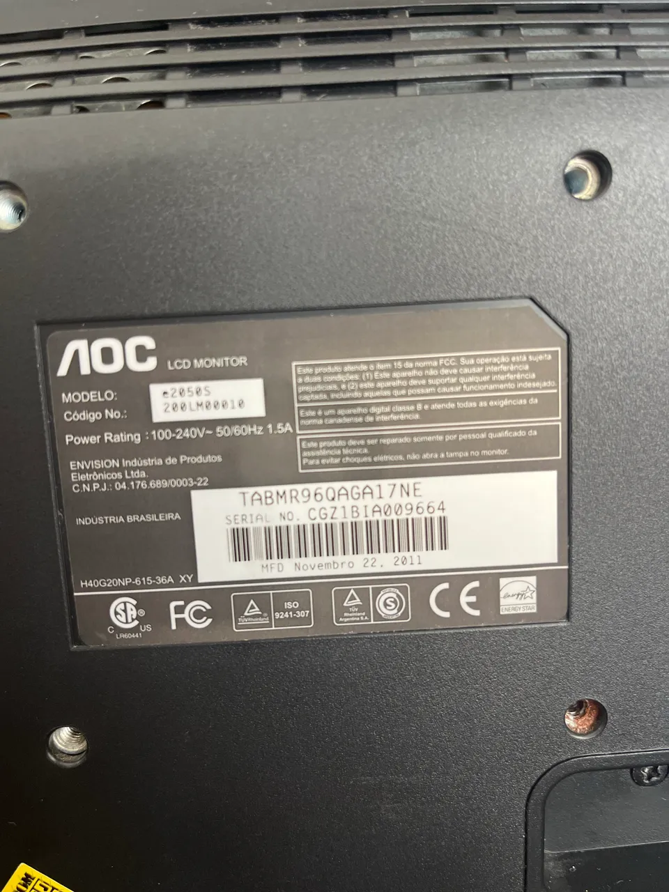 Vendo monitor AOC 20 polegadas, em ótimo estado de funcionamento.