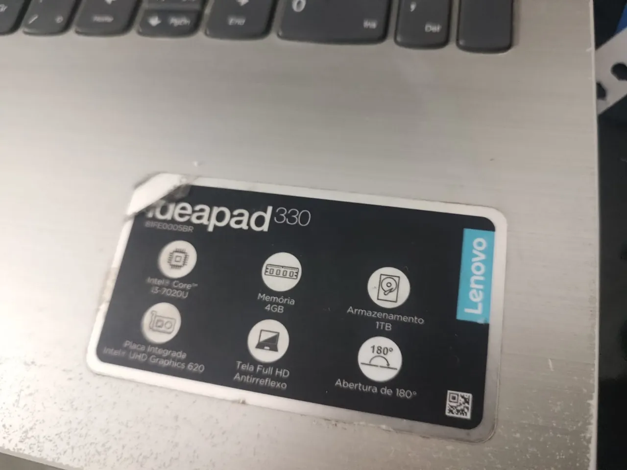 Notebook Lenovo IdeaPad 330 i3 7ª geração com tela Full HD antirreflexo, 12GB (adicionado pente) de memória RAM e 1TB de armazenamento. Ideal para suas tarefas diárias com desempenho e qualidade.