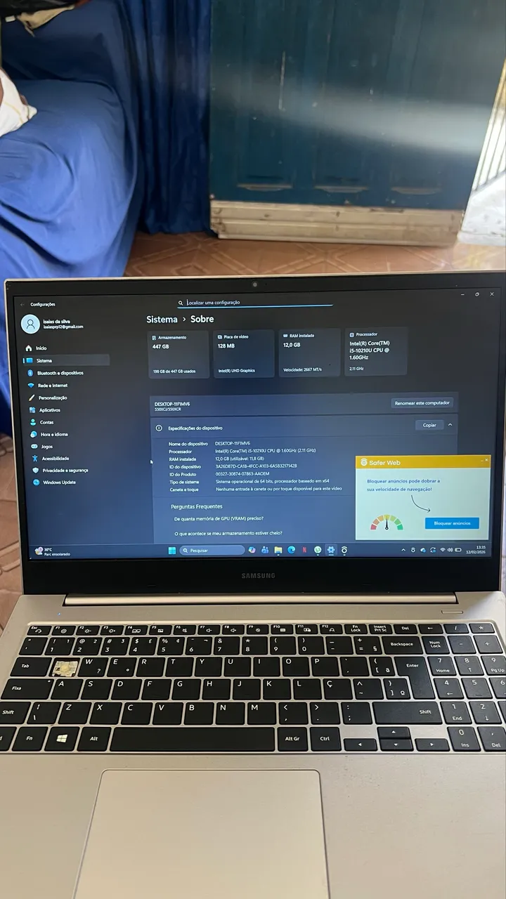 Placa de Vídeo: Integrada Intel UHD Graphics.