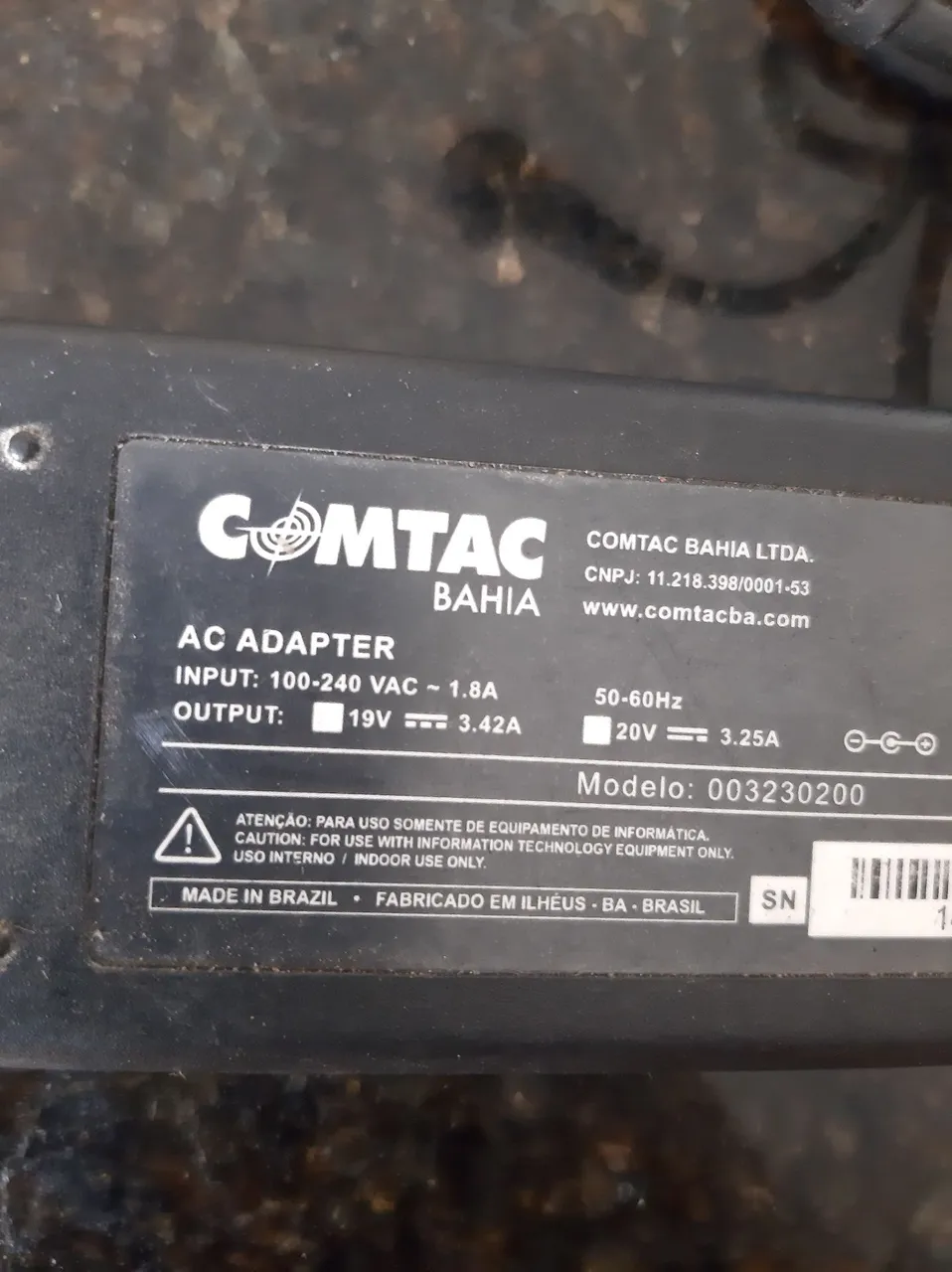 Fonte de alimentação 19V 3.42A, ideal para o seu equipamento de informática. Produto de alta qualidade e eficiência, garantindo o bom funcionamento do seu aparelho.