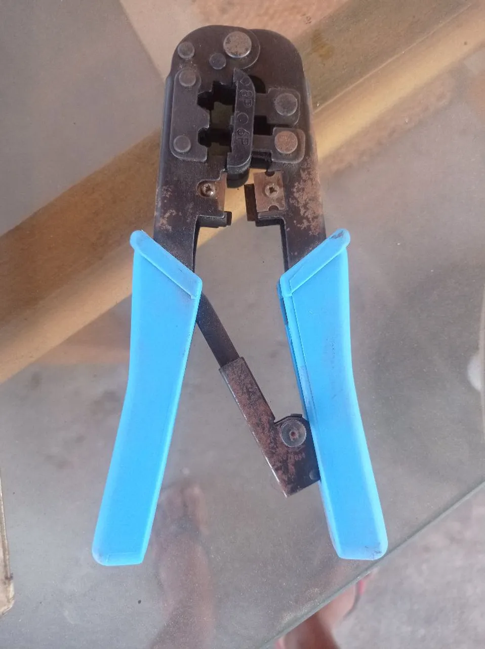 Alicate de alta qualidade para crimpagem de cabos de rede. Ferramenta essencial para técnicos e entusiastas de informática. Garanta conexões perfeitas e estáveis com este alicate resistente e durável.