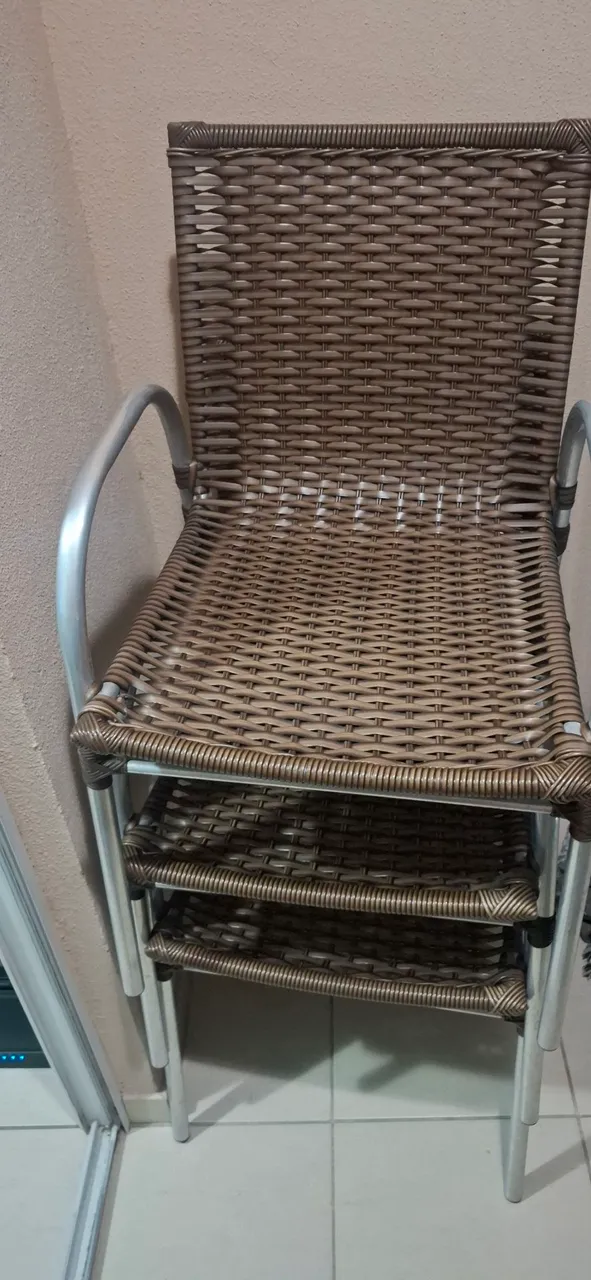 Renove sua varanda com este elegante conjunto de 4 cadeiras e uma mesa. Perfeito para momentos de lazer e descontração ao ar livre.