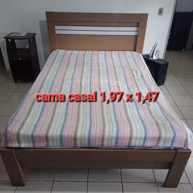 Vendo cama de casal em estado de nova, medindo 1,97 x 1,47, com colchão simples. A cama foi comprada apenas pra preencher o espaço no quanto, portanto sem uso.