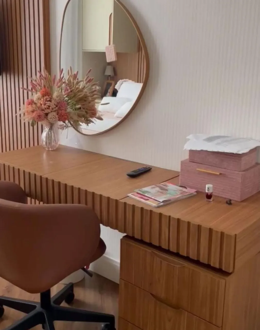 Linda penteadeira com design moderno e elegante. Perfeita para organizar seus cosméticos e itens de beleza, adicionando um toque de sofisticação ao seu quarto.