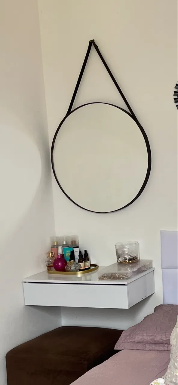 Linda penteadeira suspensa, perfeita para otimizar o espaço do seu quarto.
