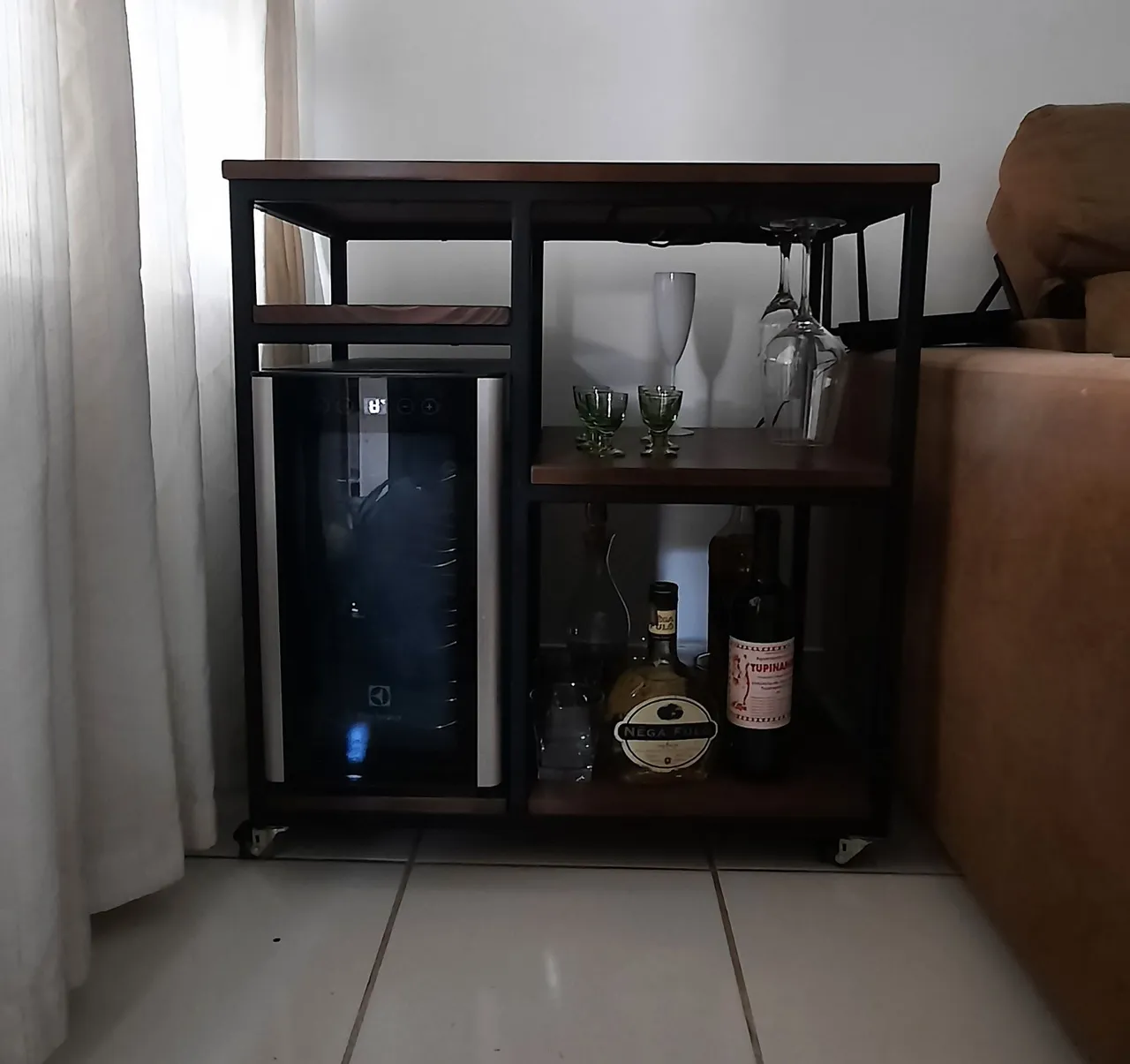 Linda mesa bar, estilo industrial em pinus, com rodízio. Largura 70 cm Profundidade 45 cm Altura 75 cm