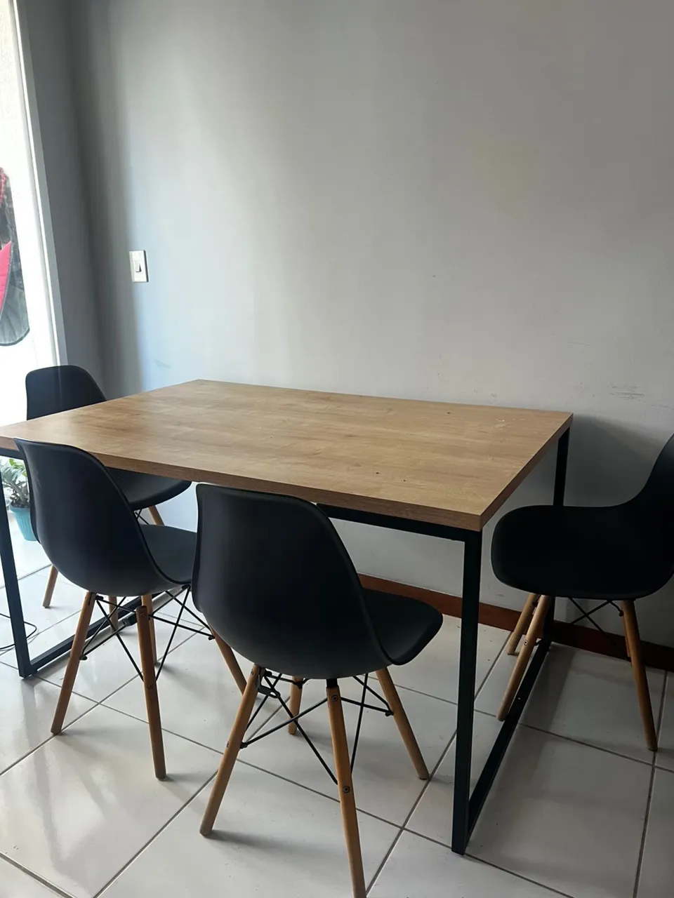 MESA DE FERRO COM MADEIRA + 4 CADEIRAS SITE MADEIRA MADEIRA
