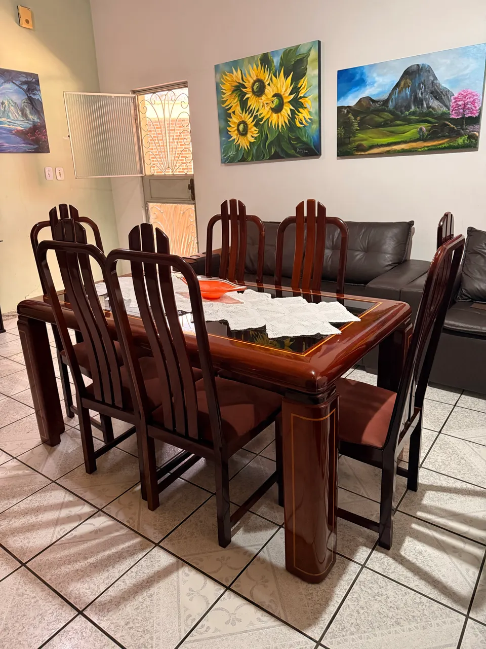 Linda mesa de jantar antiga em madeira maciça, com design clássico e elegante. Perfeita para reunir a família e amigos em momentos especiais. Uma peça que combina beleza e durabilidade, ideal para quem busca um toque de requinte em sua casa.