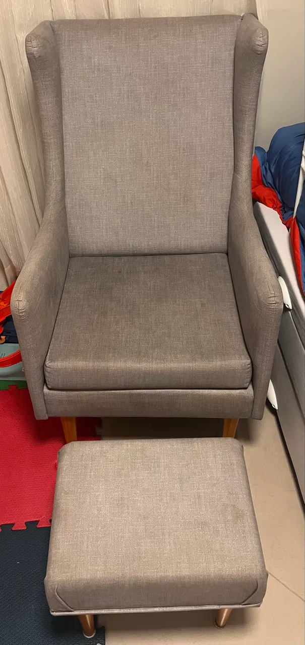Poltrona IVY da ilha Mágica ), cor cinza , com encosto de cabeça ( Ideal para as noites), slim com puff de descanso de pés ..
