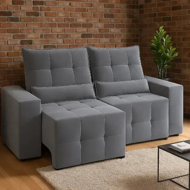 (FRETE GRÁTIS) Sofá Retrátil e Reclinável Lisboa Cinza