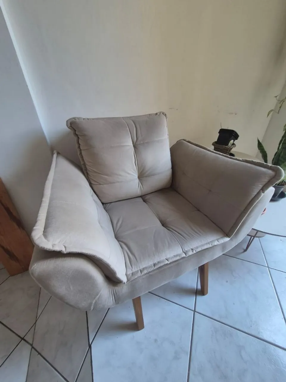 Poltrona individual novíssima!!!!! Cinza em suede. 250 no pix