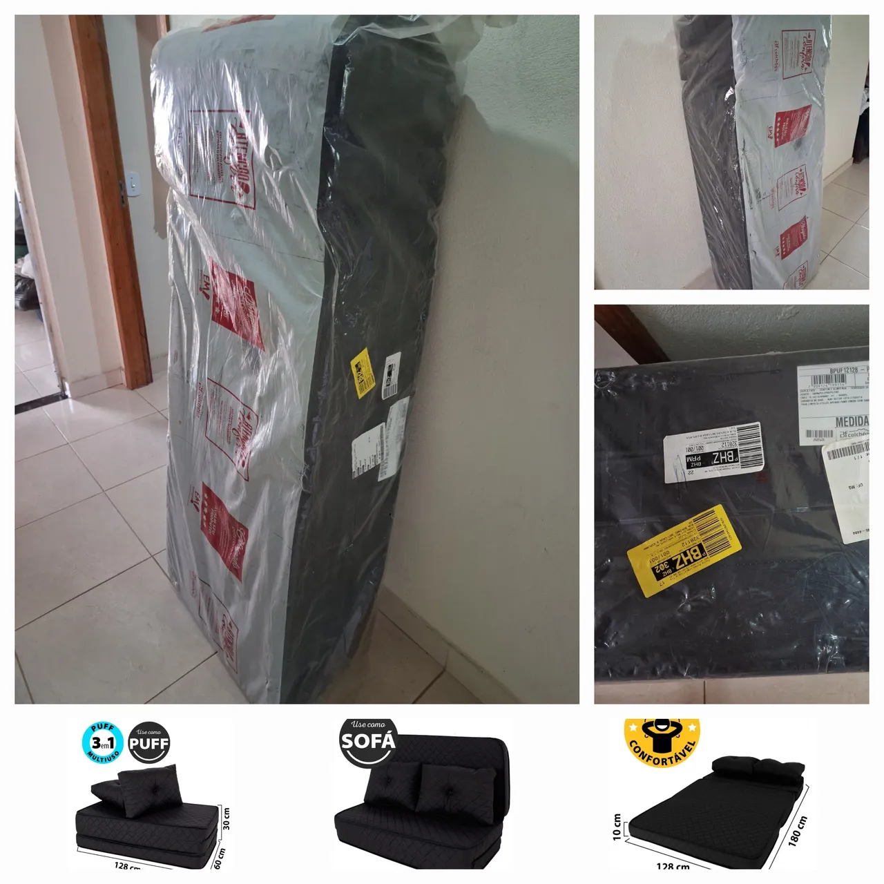Ele pode ser usado como sofá, puff ou cama, conforme as imagens pequenas! Valor 400 reais.