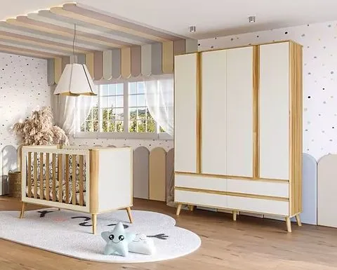 Roupeiro + Berço Theo Evolution, 100% MDF - Peroba