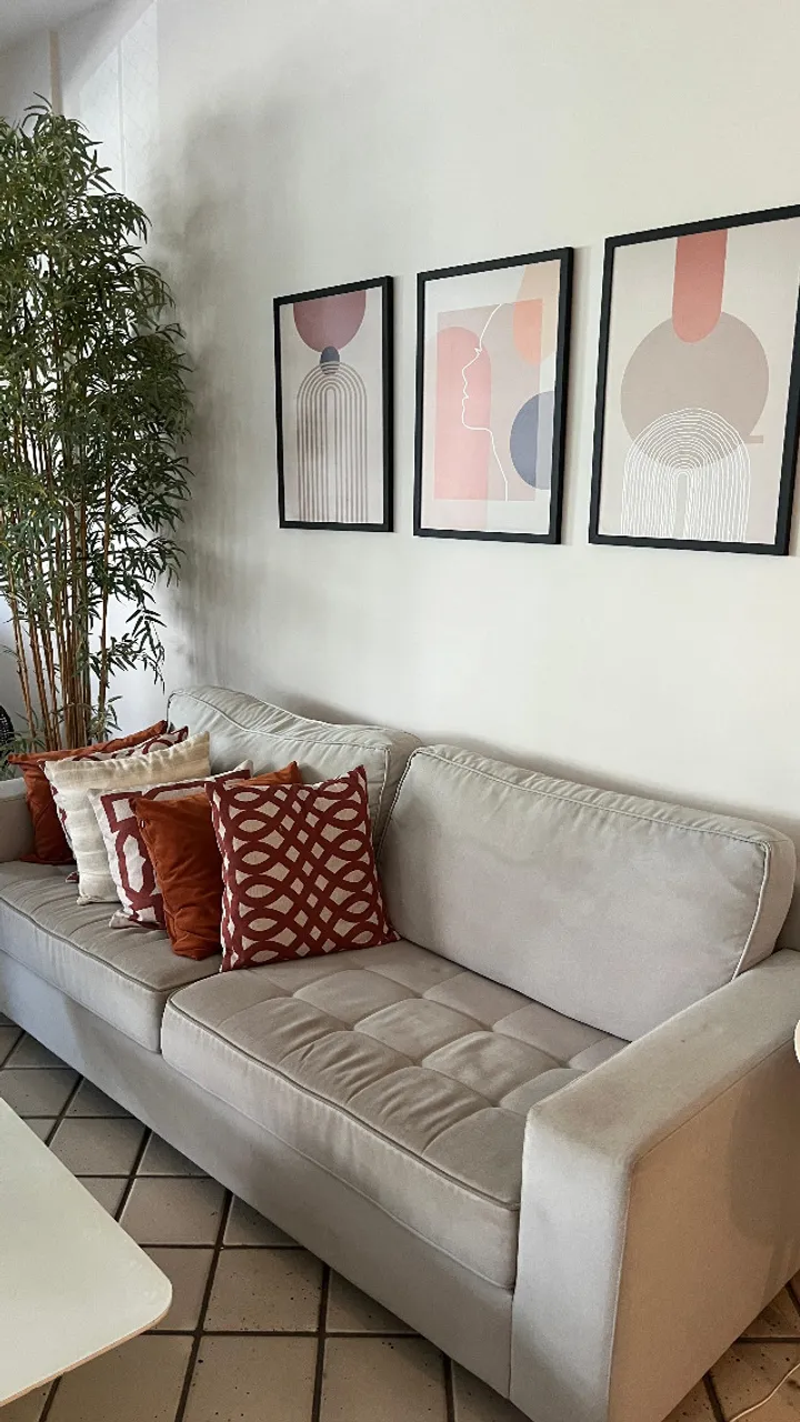 Sofá moderno e confortável para sua sala! Design elegante com assentos espaçosos, perfeito para relaxar e receber visitas. Transforme seu ambiente com este sofá incrível!