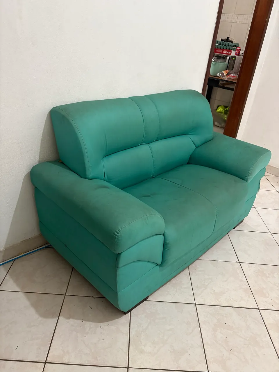 Sofá teal para venda. Bom estado, cor vibrante - Aceito trocas e aberta a negociação