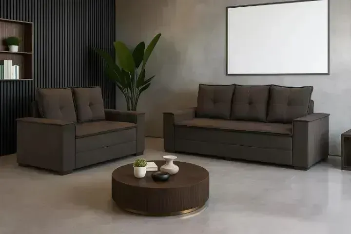 Conjunto de sofás elegante, perfeito para sua sala de estar. Com um sofá de 3 lugares e um de 2 lugares, você terá espaço de sobra para relaxar e receber visitas. Design moderno e confortável, ideal para quem busca sofisticação e bem-estar.