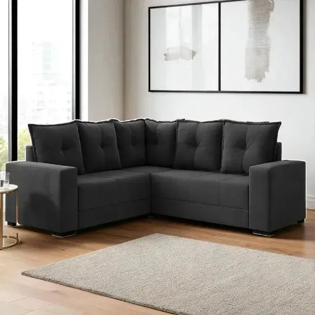 Para quem não abre mão da versatilidade, o sofá de canto Patricia oferece o melhor conforto ajustável. Com armação em madeira 100% reflorestada e mdf de 15mm, possui revestimento em tecido veludo animale, seu assento é em espuma D23 pro, com percintas elásticas 50 rmm. Suas almofadas de encosto são soltas e se encaixam em harmonia.