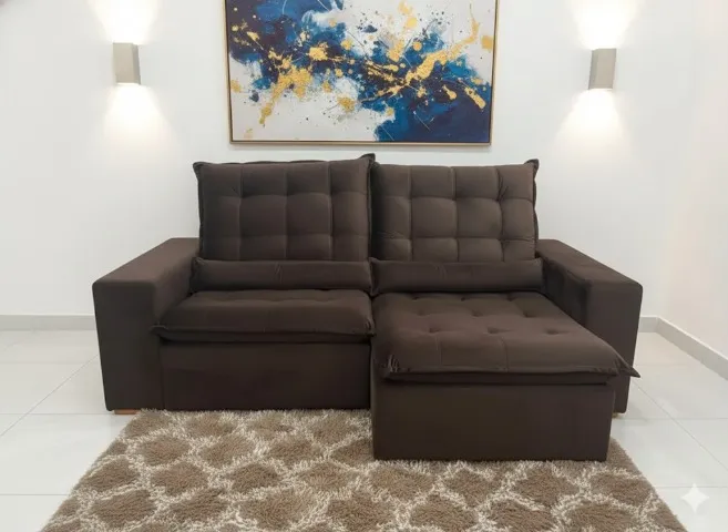 Fácil Manutenção: Tecido Premium resistente e almofadas soltas.