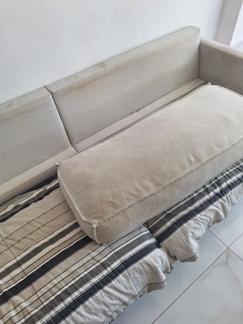 Sofá de qualidade maltratado pelas crianças. Precisa ser totalmente reestofado. Possui 2,40m. Restaurar ele é metade do valor que paguei nele novo.