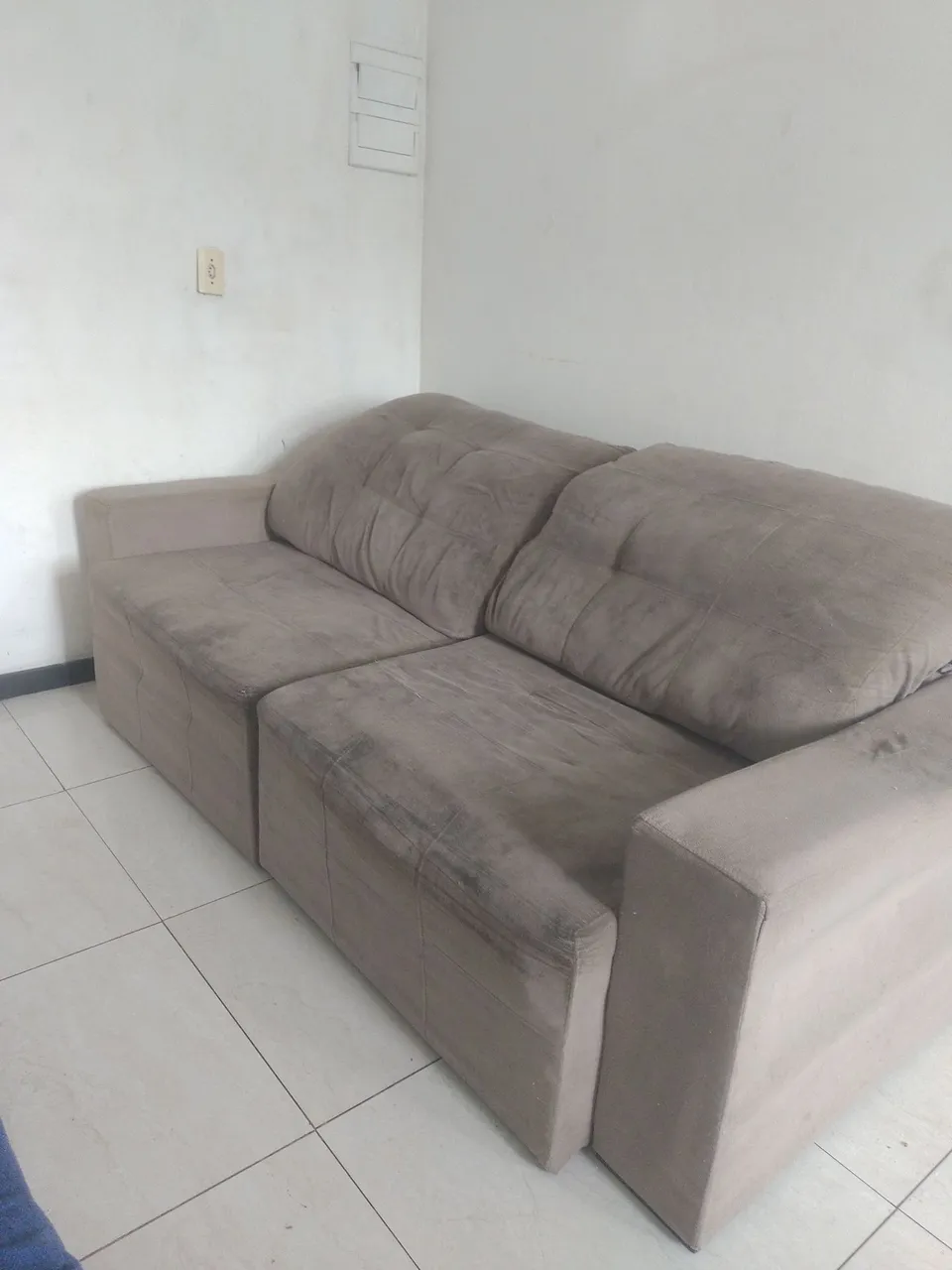 Sofá com a costura perfeita, nenhum rasgado, está precisando apenas de preenchimento de espuma na parte do assento, e uma boa limpeza.