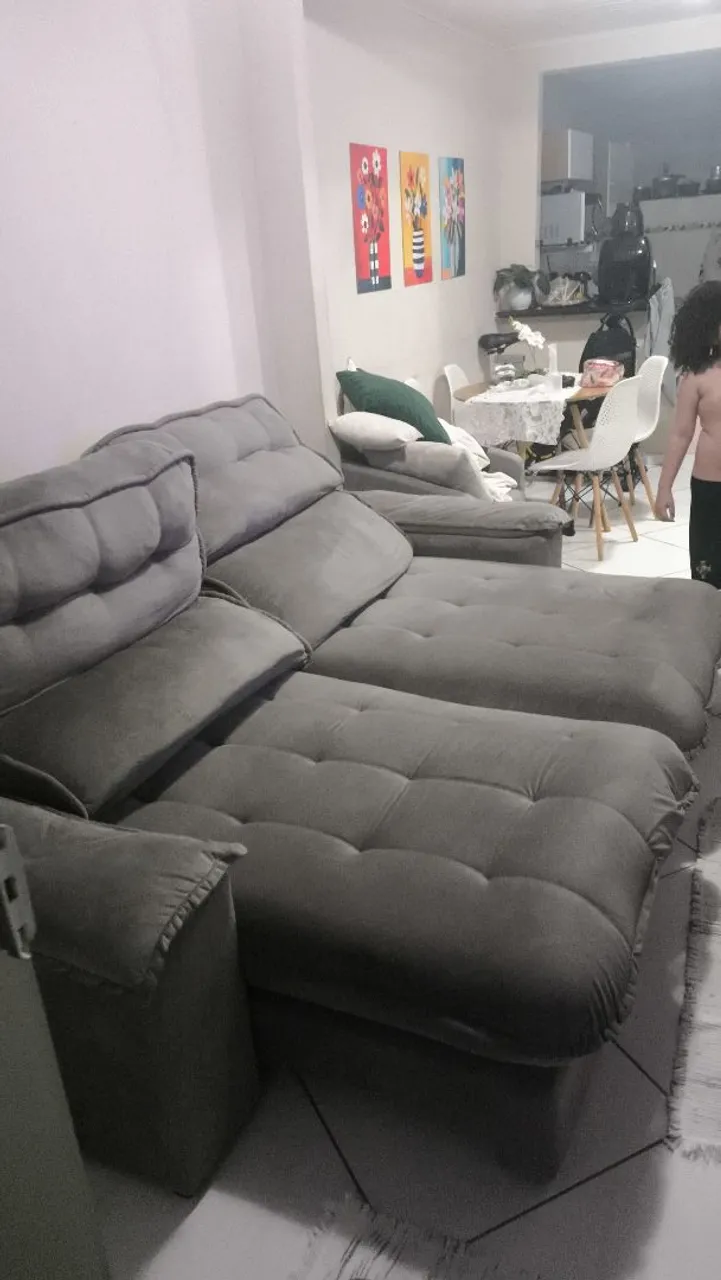 Desfrute do máximo conforto com este sofá retrátil de 250 cm! Feito com espuma D33 de alta qualidade e na elegante cor cinza, este sofá é perfeito para relaxar e aproveitar momentos de lazer em grande estilo.